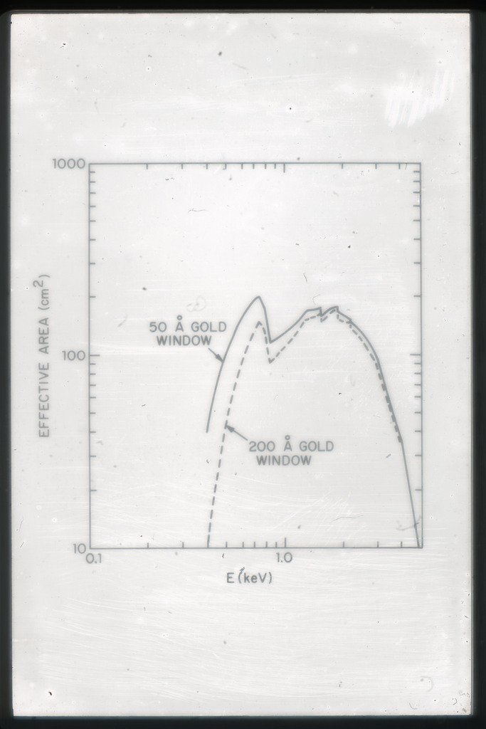E/44 Effective area HRI ~2 with no filters, with Be filter, and with Al filter. Photons which scatter from the mirror with angles greater than 6" have not been included, thus this efficiency is for 12" pixels. |