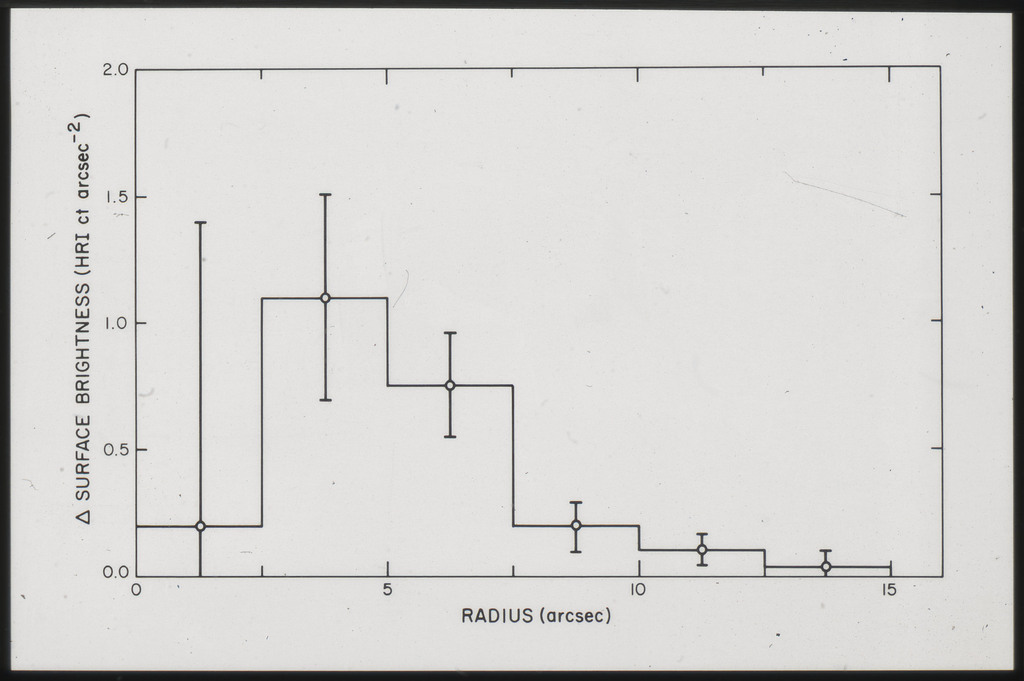 E/1006 The radial distribution of x-ray photons in the nuclear region of M51 (histogram) compared to the HRI point spread function (solid line). |