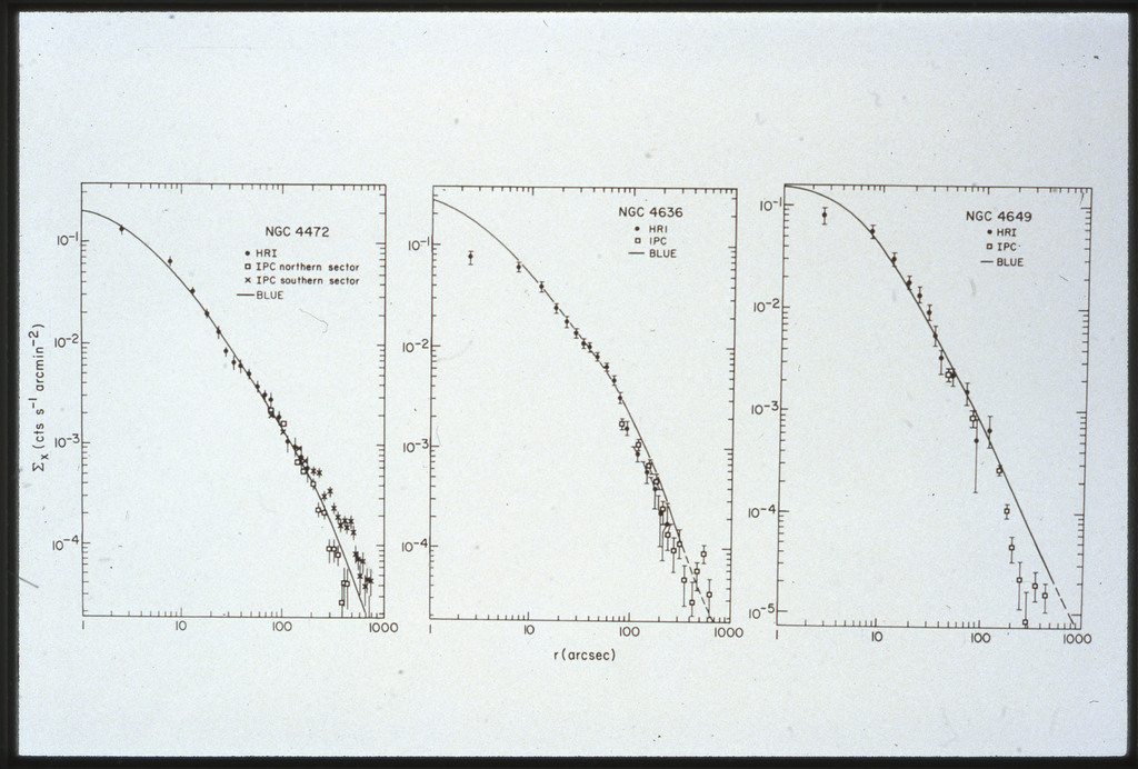 E/1034 Azimuthally average IPC X-ray surface brightness profiles of NGC 4472. |