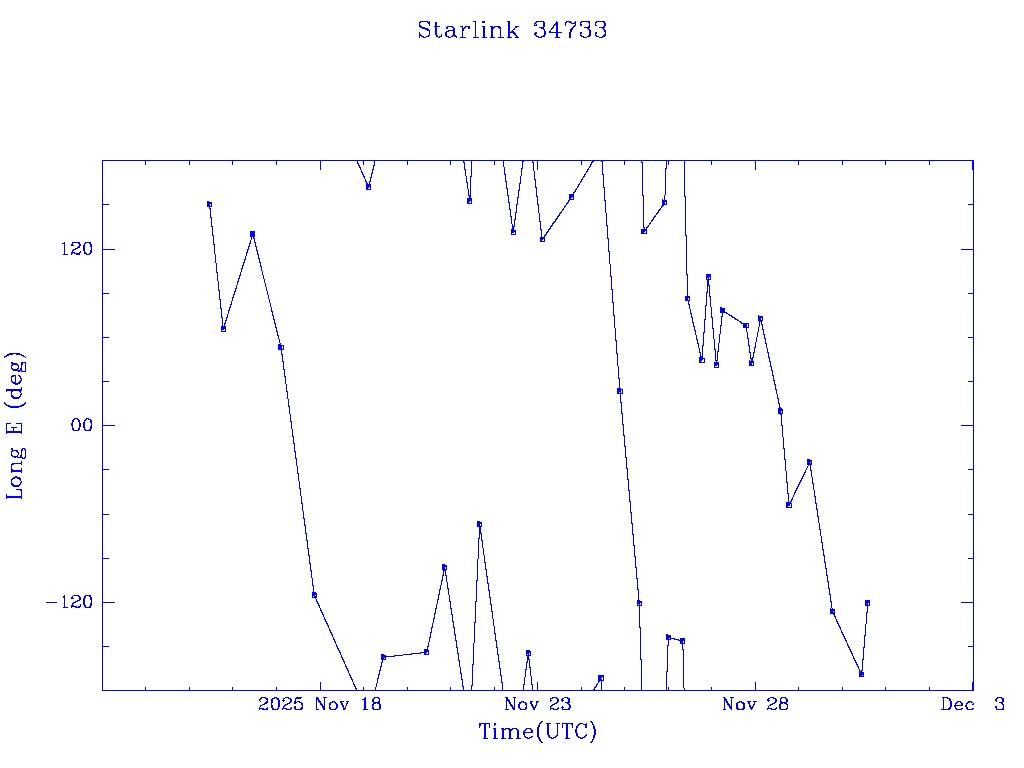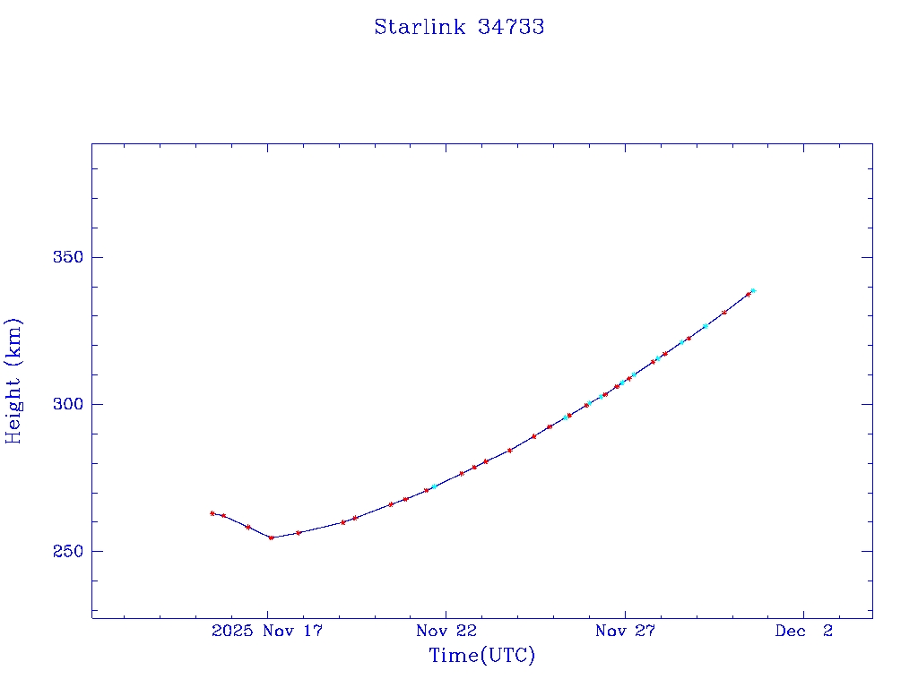 | Starlink 34733 | S66487 | A | 2025 Nov 15 | * | - |  |  |  |