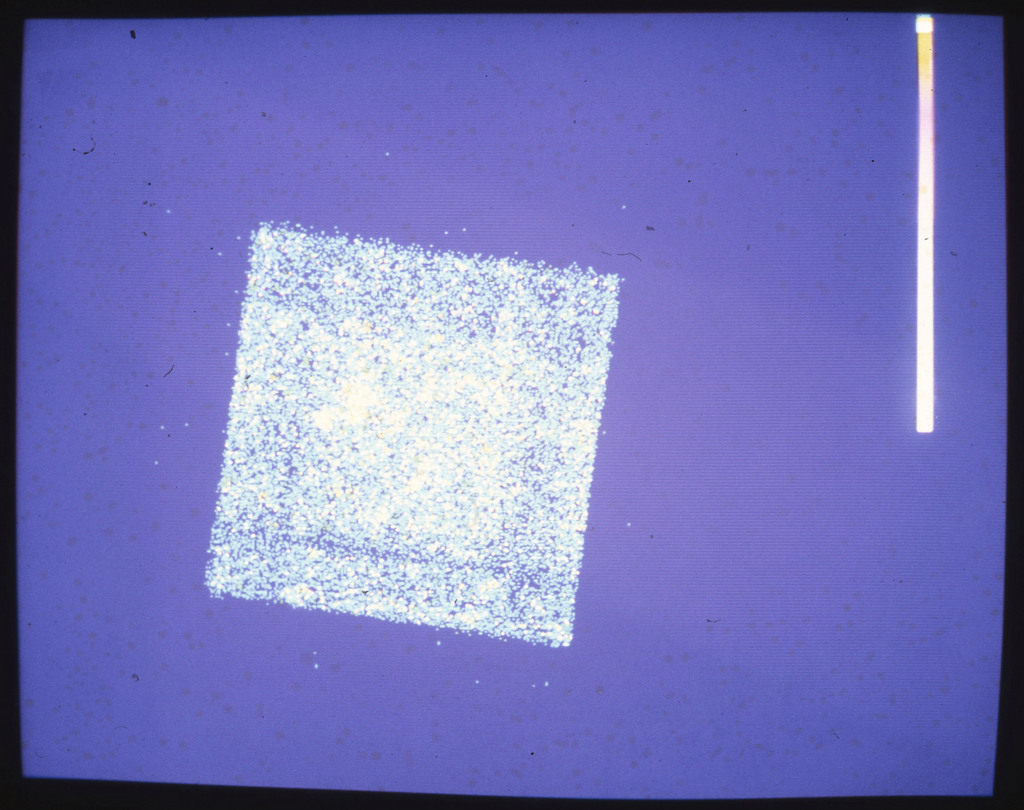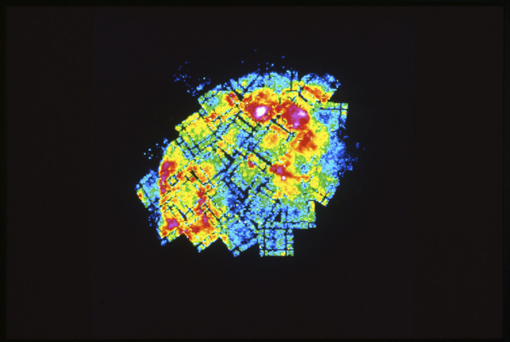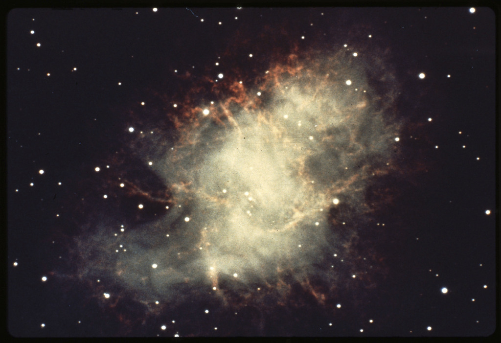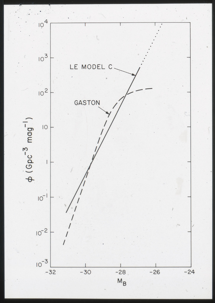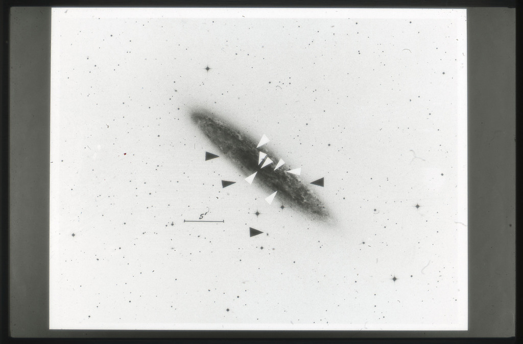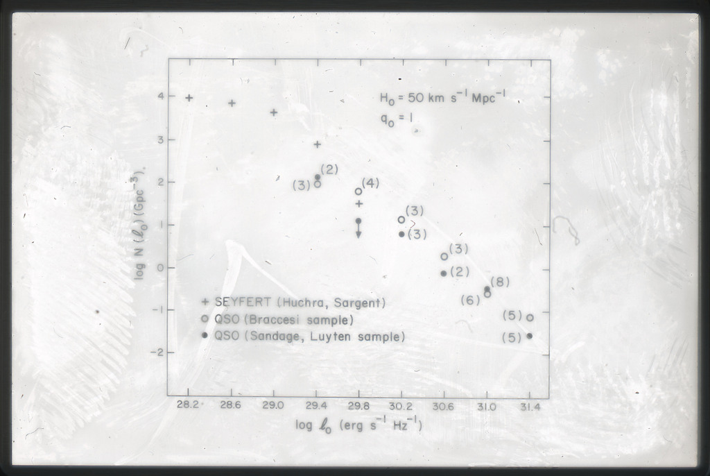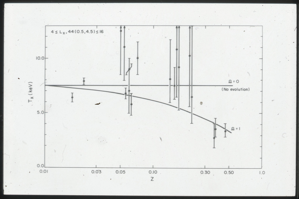 E/1003 A 1367. Optical picture of the cluster contains several hundred individual galaxies, the brightest of which are seen as the extended or fuzzy dark spots. |
