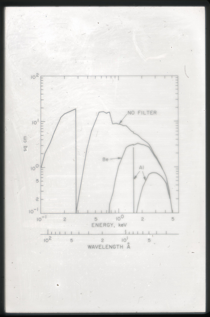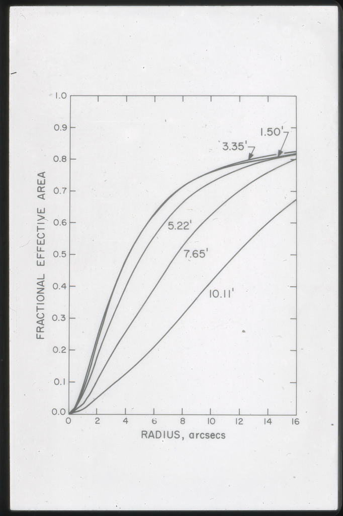 E/44 Effective area HRI ~2 with no filters, with Be filter, and with Al filter. Photons which scatter from the mirror with angles greater than 6" have not been included, thus this efficiency is for 12" pixels. |