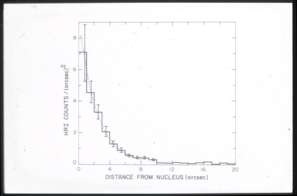 E/1006 The radial distribution of x-ray photons in the nuclear region of M51 (histogram) compared to the HRI point spread function (solid line). |