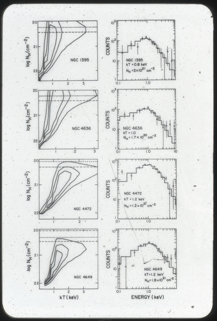 E/1032 Azimuthally averaged IPC X-ray surface brightness profiles of NGC 720, 1395, 4382 and 4649. |