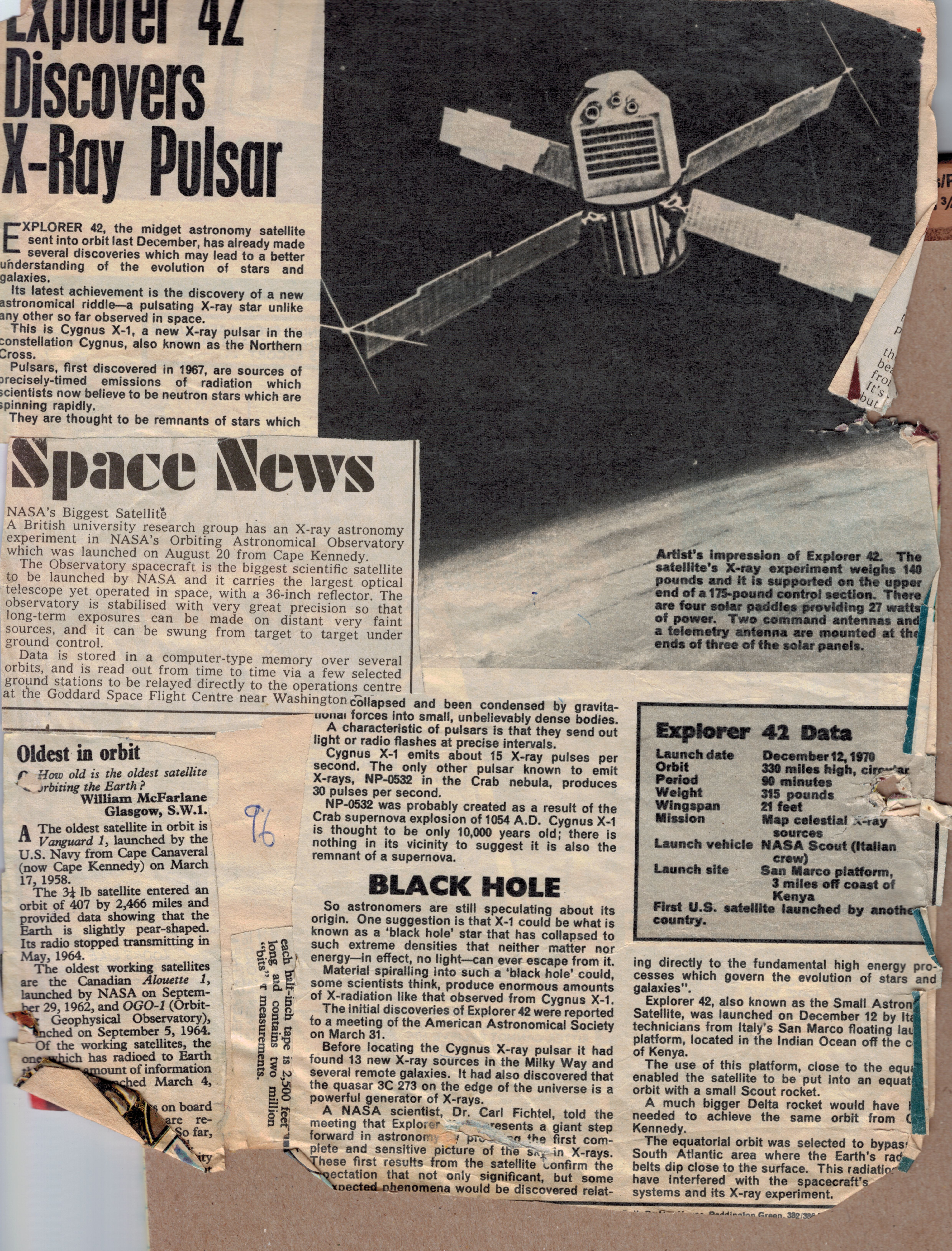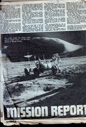 Although the parental units forced me to jettison my comic collection, I cut out the space-related articles and pasted them in a scrapbook which I still possess. I've scanned a selection of the disintegrating pages to give a sense of the high quality of these articles; I've also included fragments of the comic strips from the reverse side of the space articles. Hopefully these extracts count as a fair use subset.