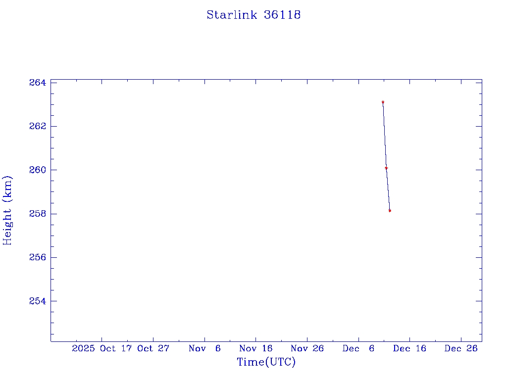 | Starlink 36118 | S67009 | D | 2025 Dec 10 | * | - |  |  |  |