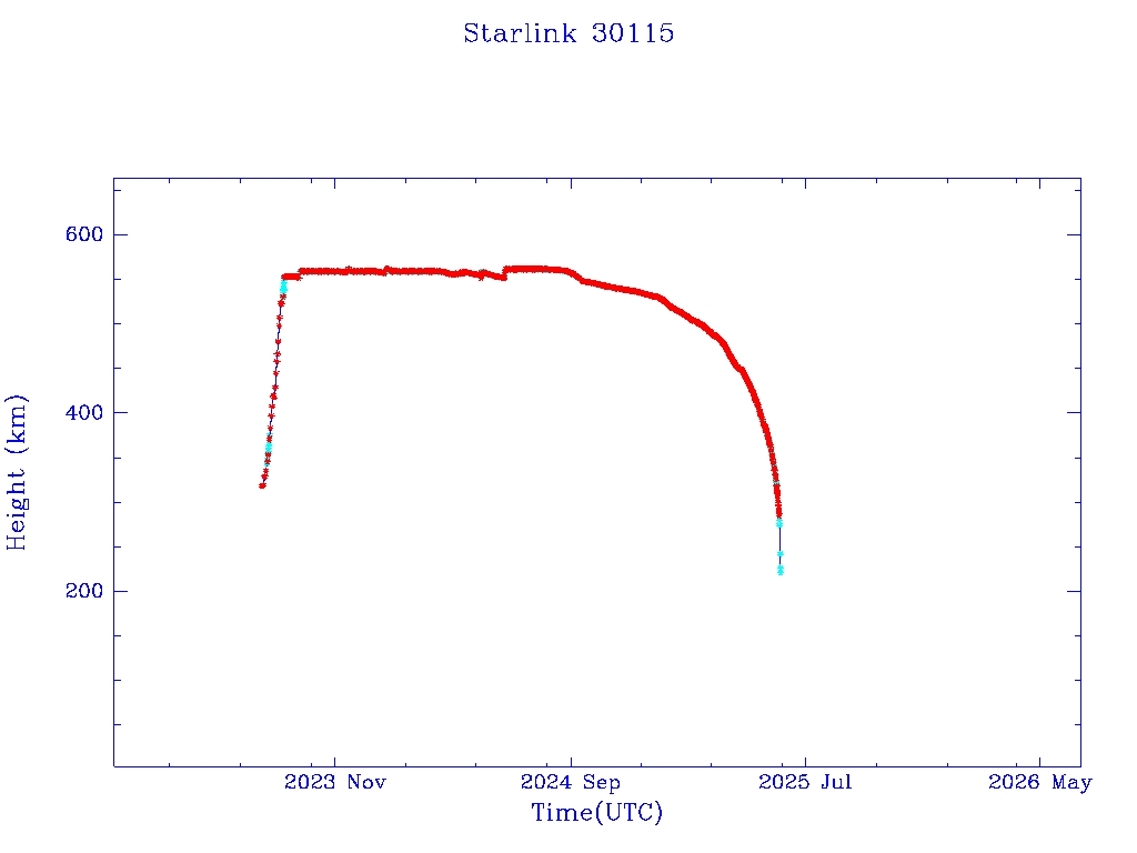 | Starlink 30115 | S57464 | R | 2023 Jul 28 | 2025 Apr 8? | 2025 May 29 |  |  |  |