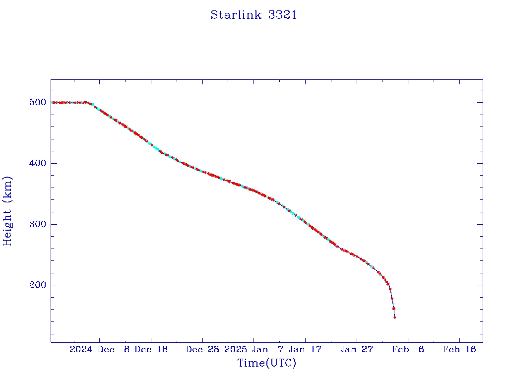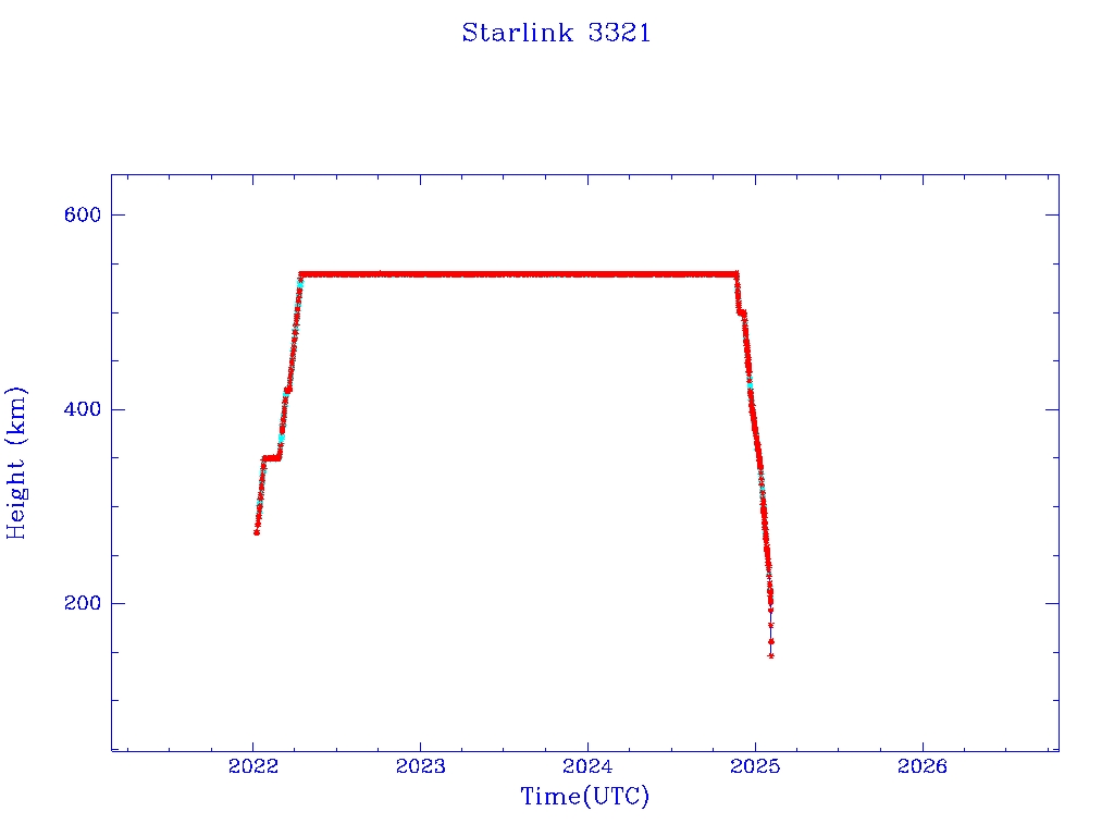 | Starlink 3321 | S50803 | R | 2022 Jan 6 | 2025 Jan 26? | 2025 Feb 3 |  |  |  |