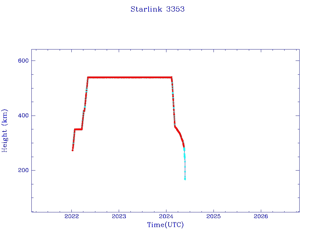 | Starlink 3353 | S50807 | R | 2022 Jan 6 | 2024 May 6? | 2024 May 24 |  |  |  |