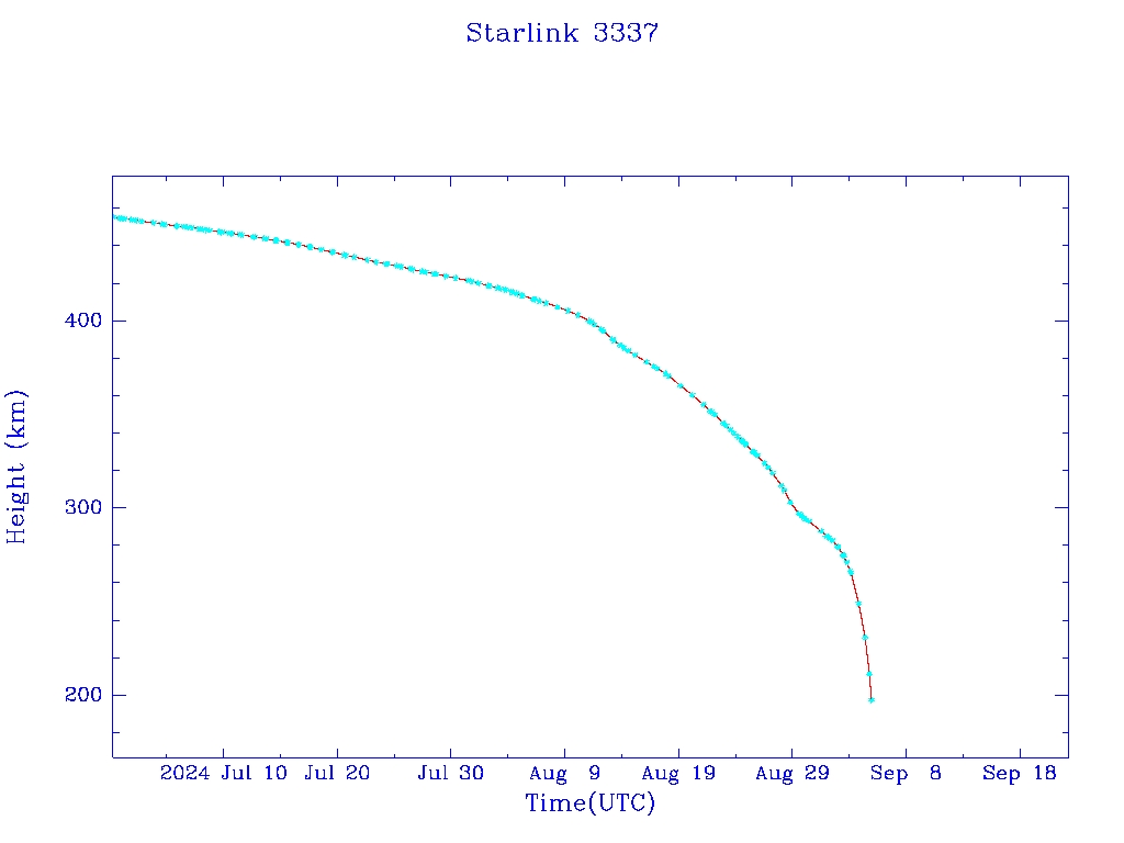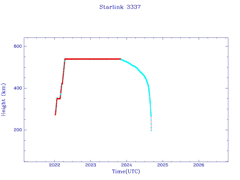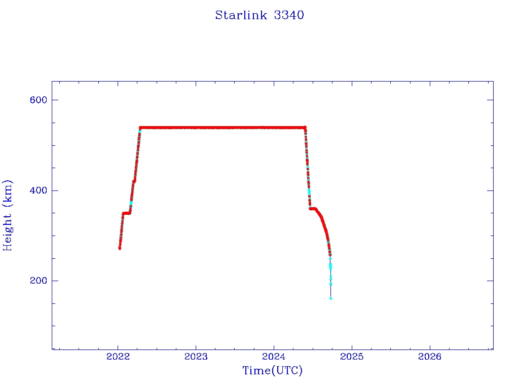 | Starlink 3340 | S50824 | R | 2022 Jan 6 | 2024 Jul 13? | 2024 Sep 23 |  |  |  |