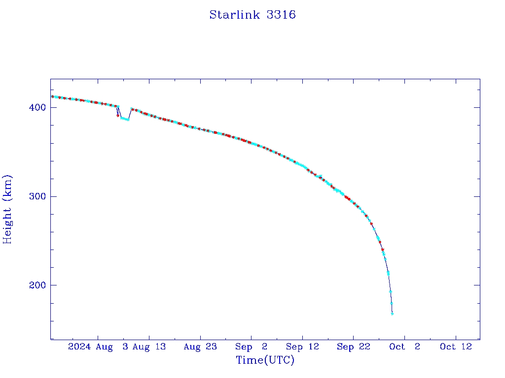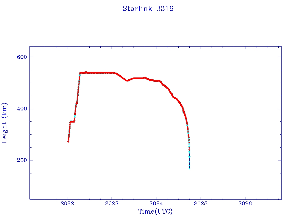 | Starlink 3316 | S50833 | R | 2022 Jan 6 | 2024 Jun 13? | 2024 Sep 29 |  |  |  |