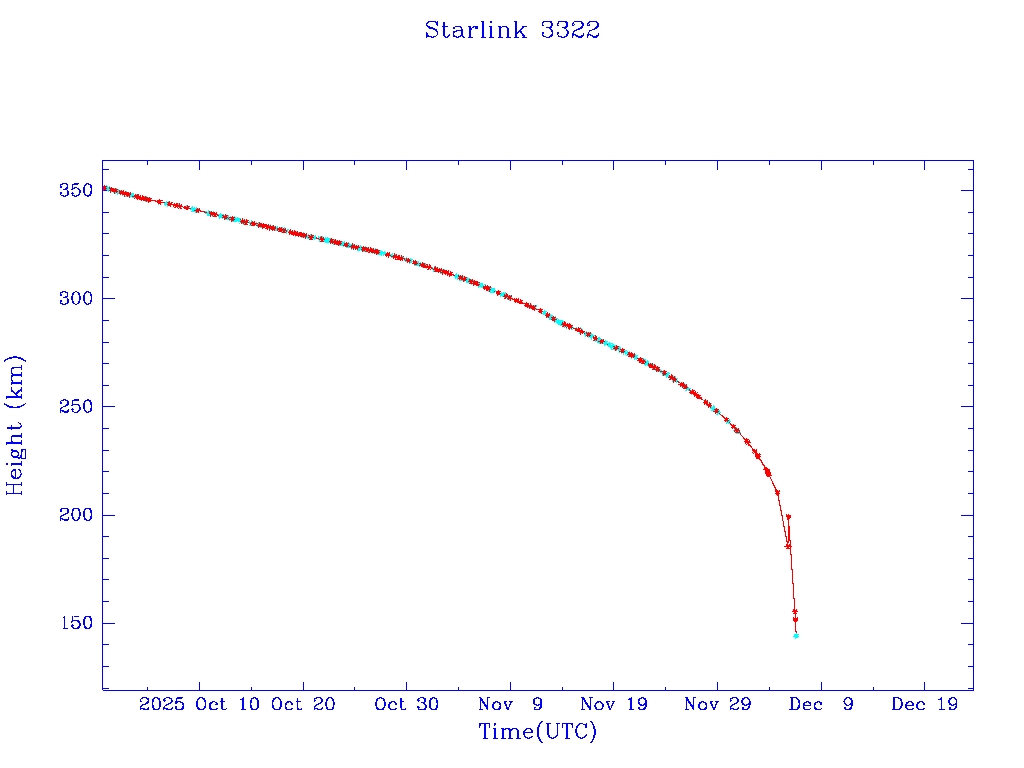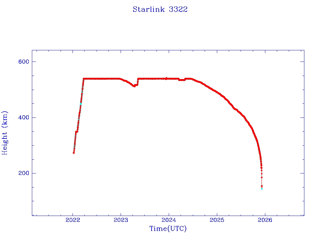 | Starlink 3322 | S50838 | M | 2022 Jan 6 | 2024 Jun 28? | 2025 Dec 6 |  |  |  |