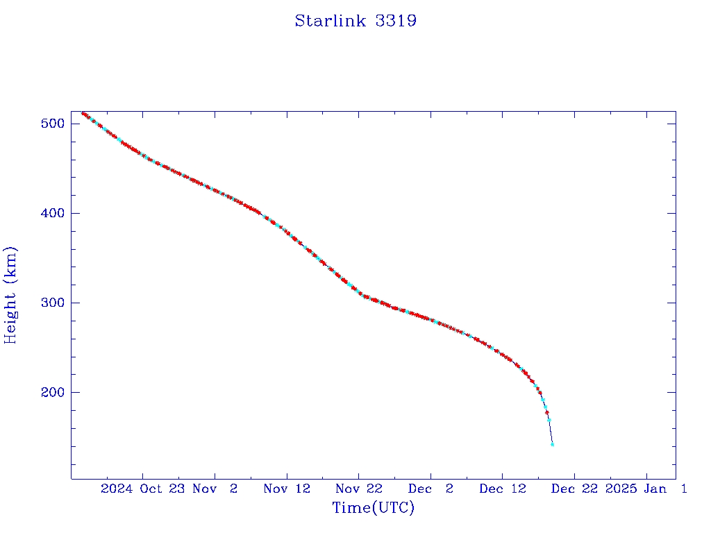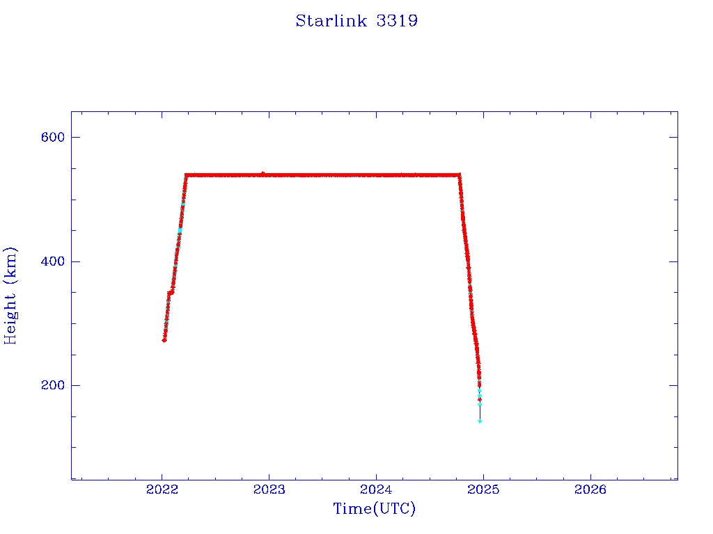 | Starlink 3319 | S50847 | R | 2022 Jan 6 | 2024 Nov 24? | 2024 Dec 19 |  |  |  |