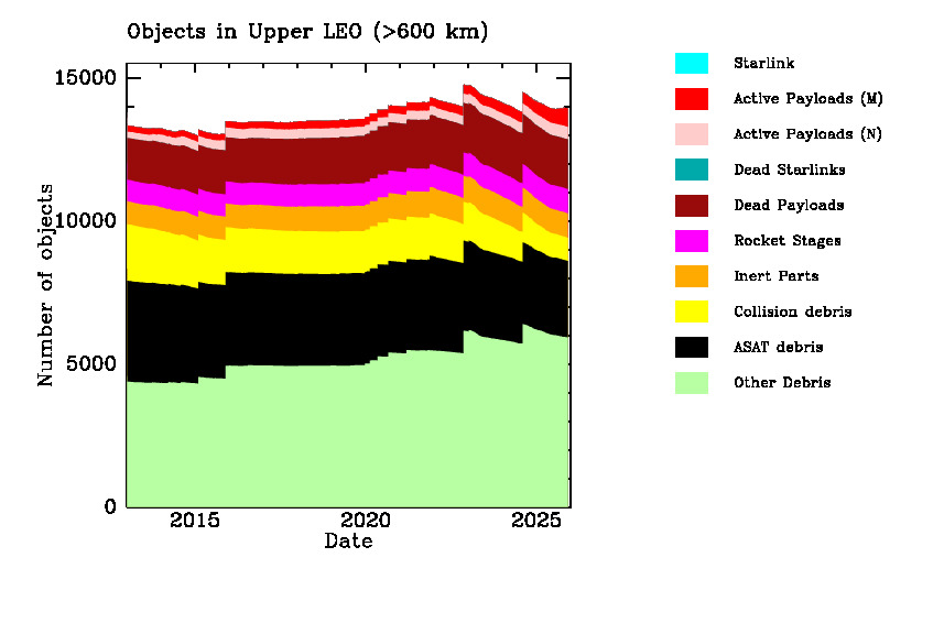| Cataloged debris, Small Sats in Upper LEO: | 9417 |