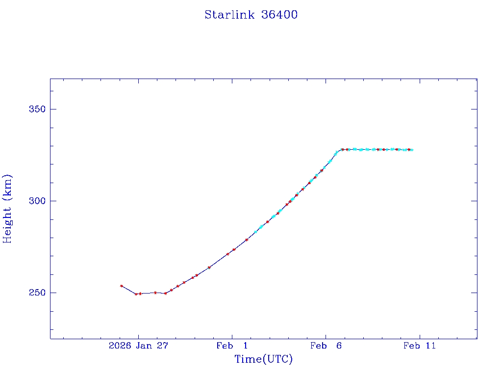 | Starlink 36400 | S67575 | A | 2026 Jan 25 | * | - |  |  |  |