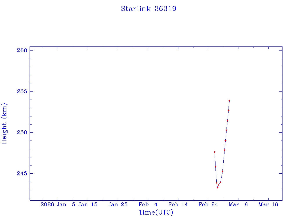 | Starlink 36319 | S67970 | D | 2026 Feb 25 | * | - |  |  |  |