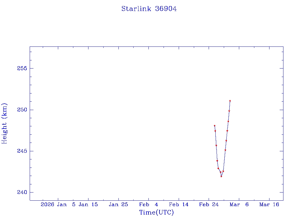 | Starlink 36904 | S67977 | D | 2026 Feb 25 | * | - |  |  |  |