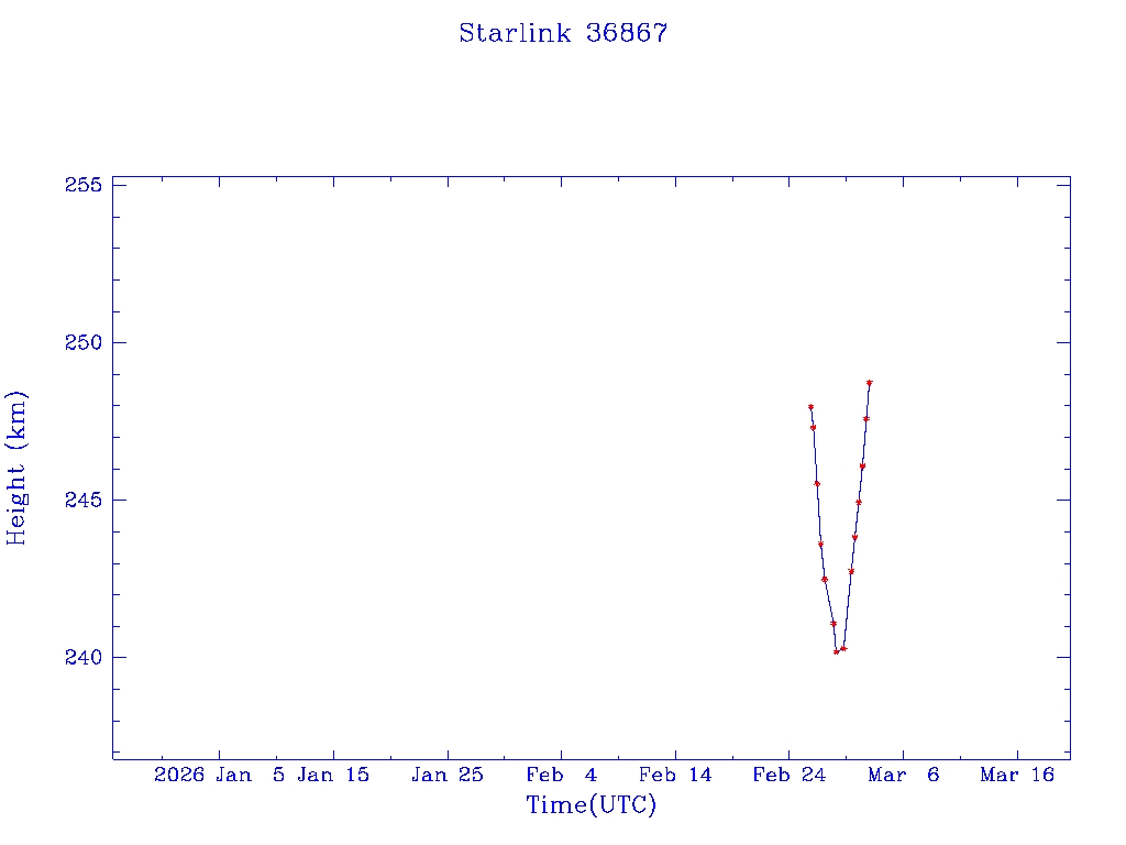 | Starlink 36867 | S67983 | D | 2026 Feb 25 | * | - |  |  |  |