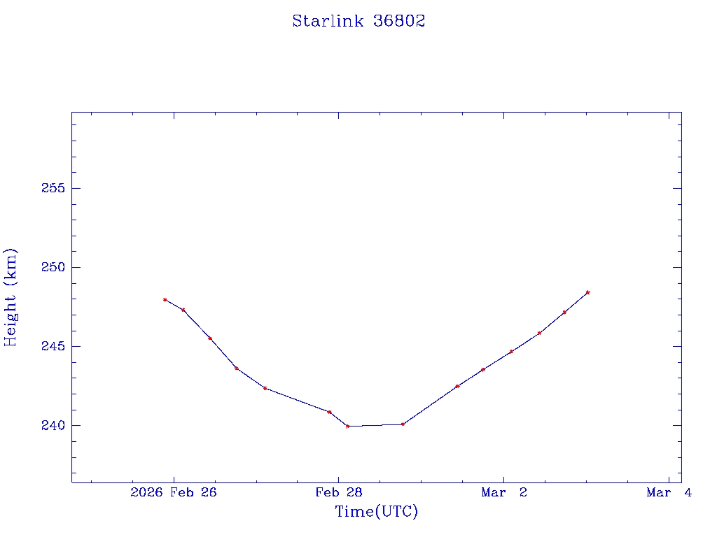| Starlink 36802 | S67985 | D | 2026 Feb 25 | * | - |  |  |  |