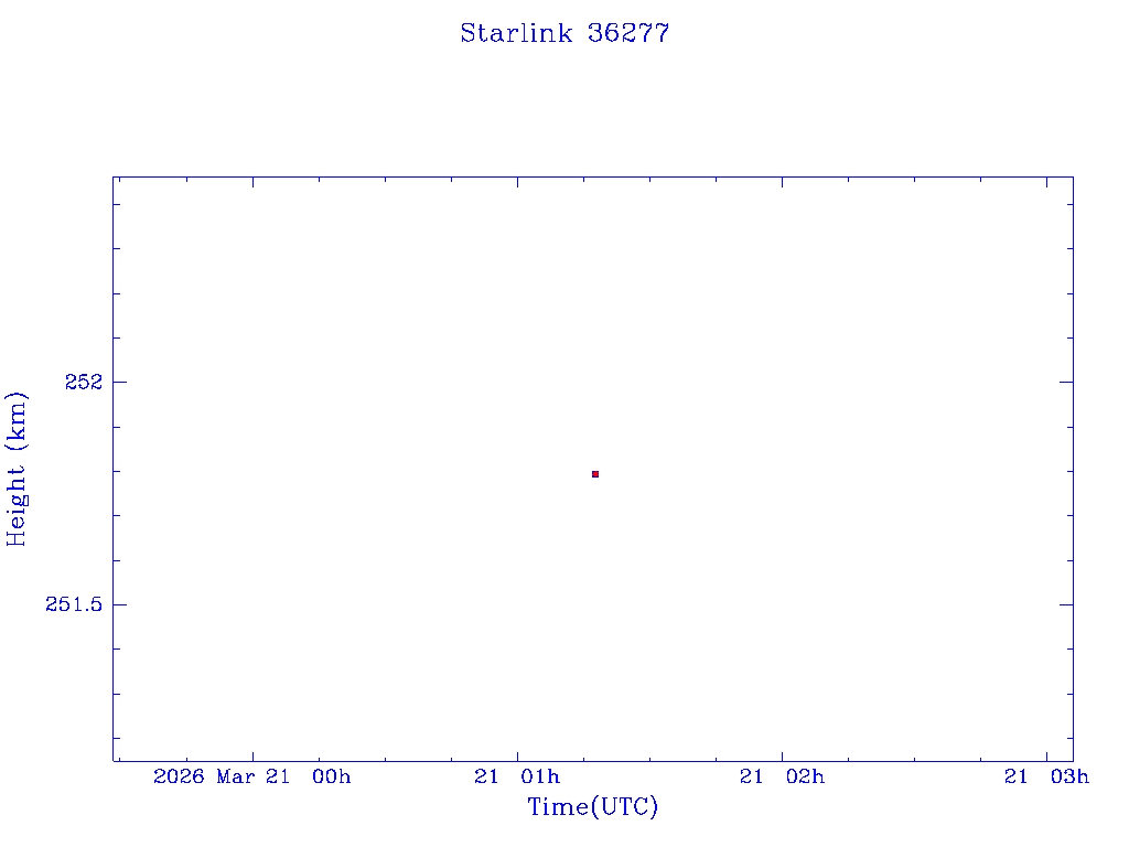 | Starlink 36277 | S68305 | D | 2026 Mar 20 | * | - |  |  |  |