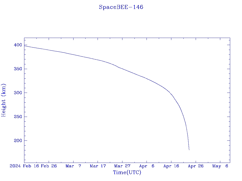 | SpaceBEE-146 | S52412 | | 2022 May 2 | 2024 Mar? | 2024 Apr 23 |  |  |  |