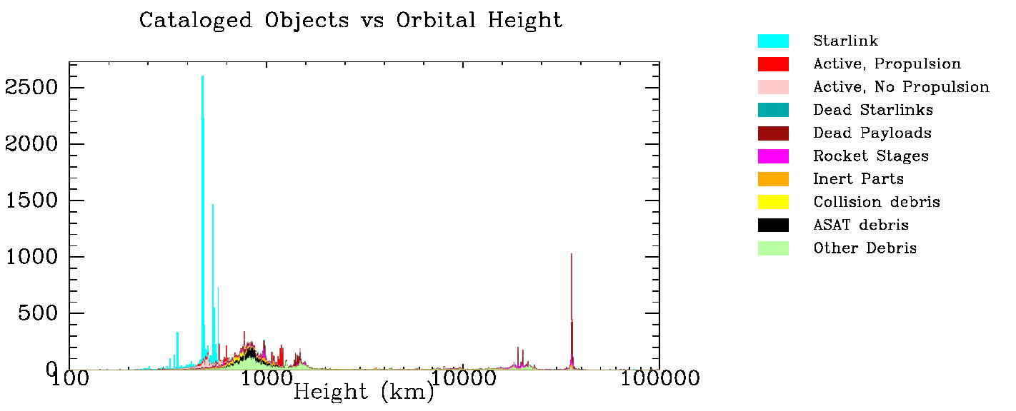 Sat and Debris Population - number vs height