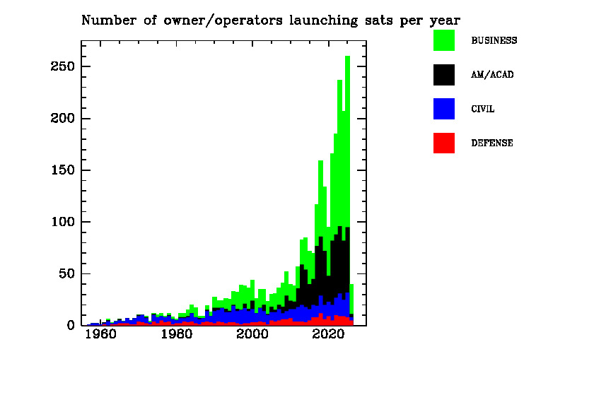 Sats launched per year versus owner category