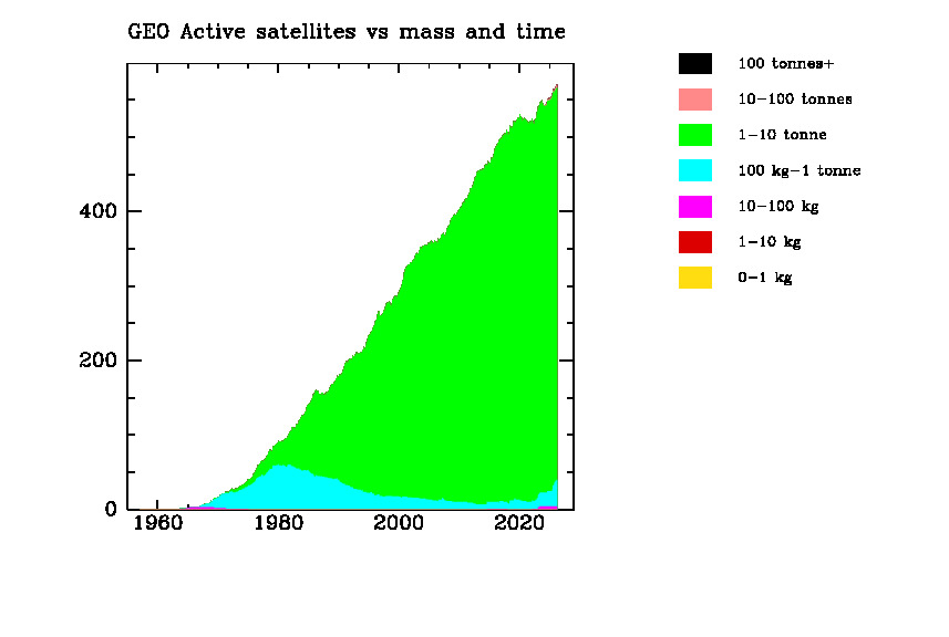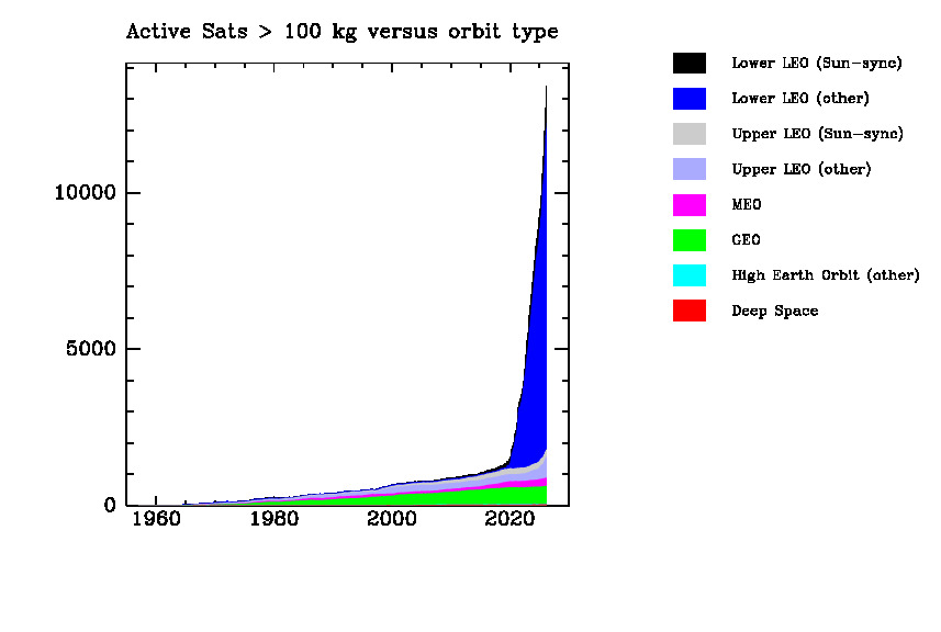 Active sats versus mass and orbit type