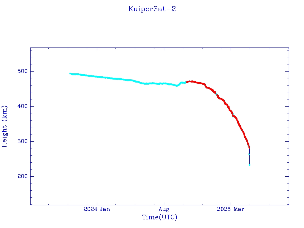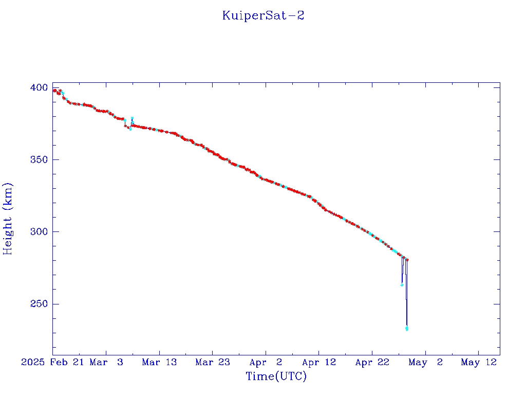 | KuiperSat-2 | S58013 | R | 2023 Oct 6 | 2025 Apr? | 2025 Apr 29 | ![]() | ![]() | ![]() |