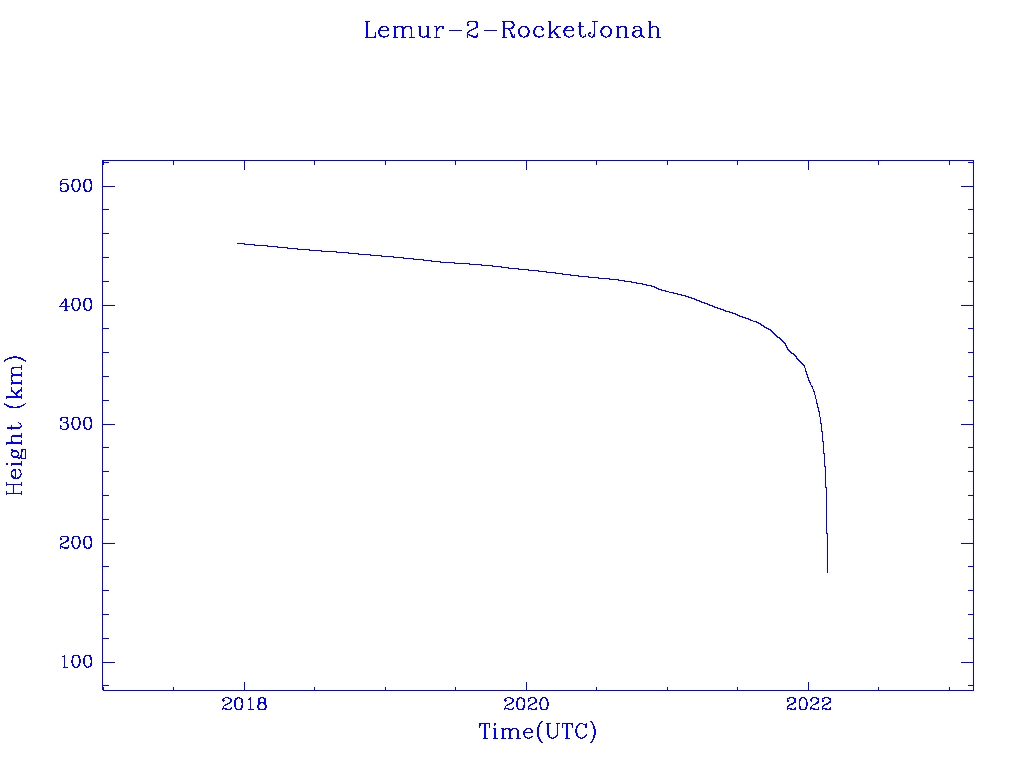 | Lemur-2-RocketJonah | S43041 | | 2017 Nov 12 | 2020 Nov? | 2022 Feb 14 |  |  |  |
