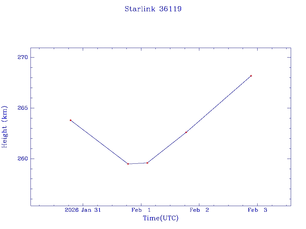 | Starlink 36119 | S67619 | A | 2026 Jan 30 | * | - |  |  |  |