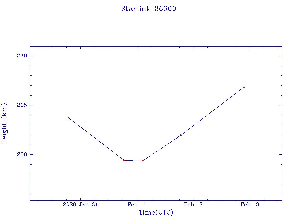 | Starlink 36600 | S67623 | A | 2026 Jan 30 | * | - |  |  |  |