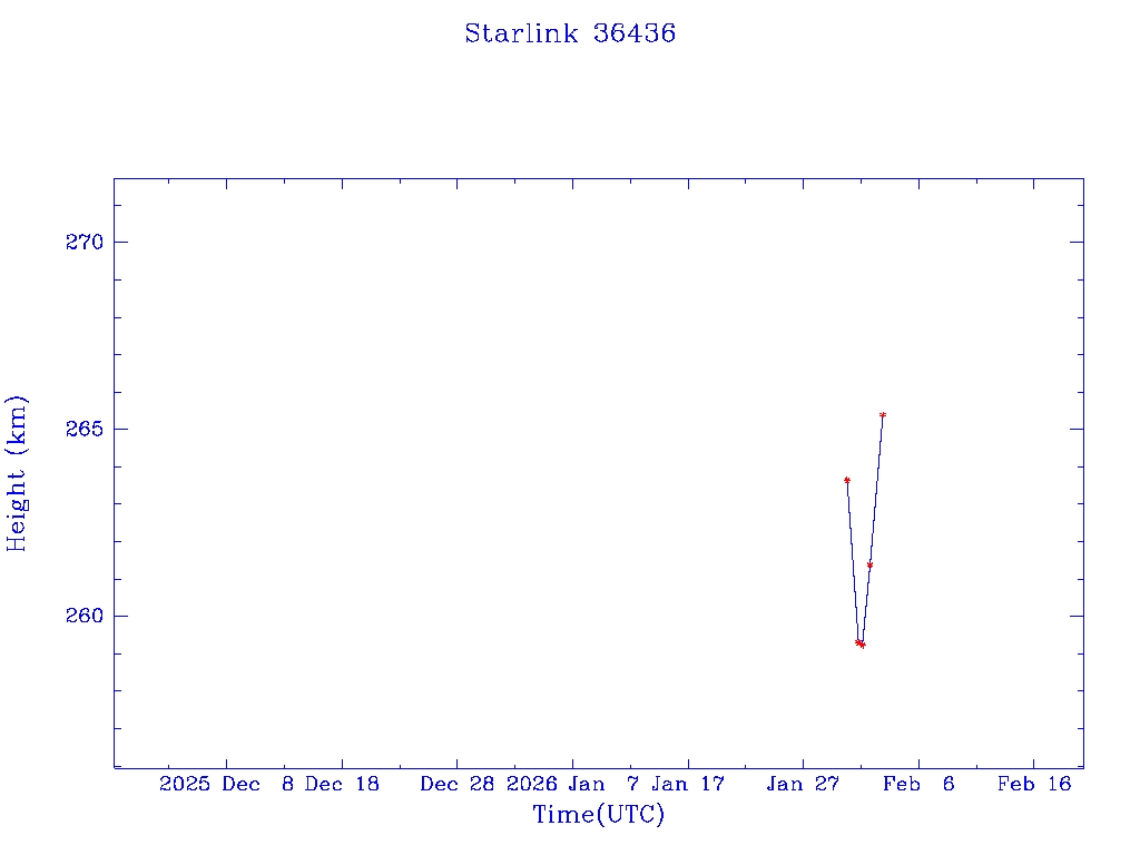 | Starlink 36436 | S67626 | A | 2026 Jan 30 | * | - |  |  |  |