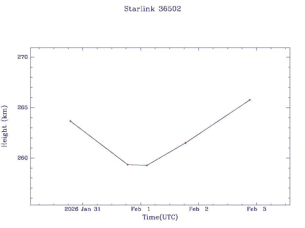 | Starlink 36502 | S67627 | A | 2026 Jan 30 | * | - |  |  |  |