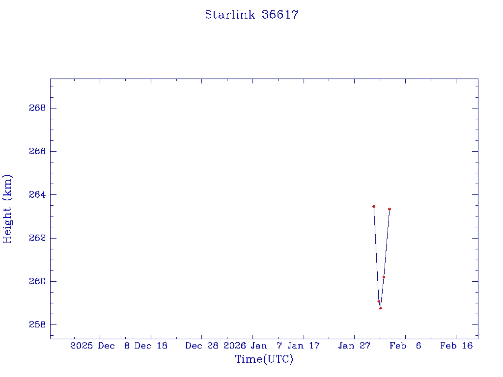 | Starlink 36617 | S67634 | A | 2026 Jan 30 | * | - |  |  |  |