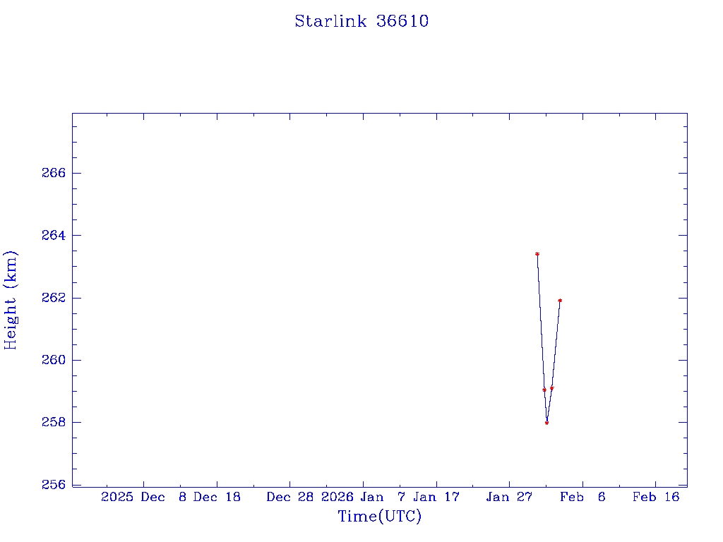| Starlink 36610 | S67637 | A | 2026 Jan 30 | * | - |  |  |  |