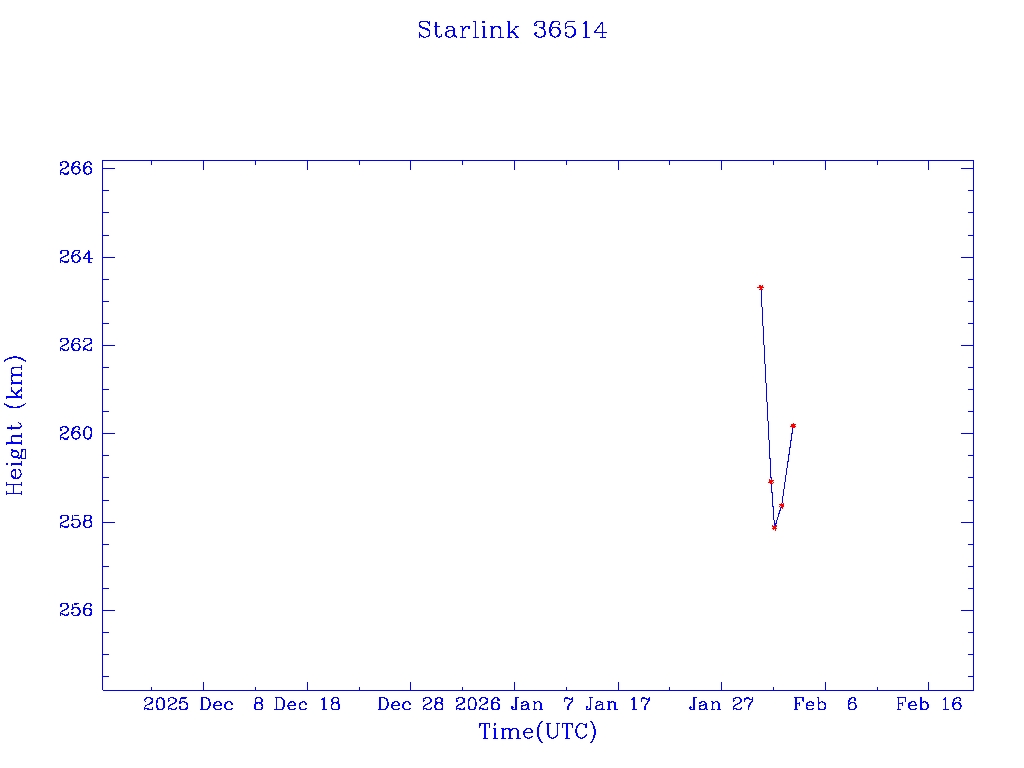 | Starlink 36514 | S67641 | A | 2026 Jan 30 | * | - |  |  |  |