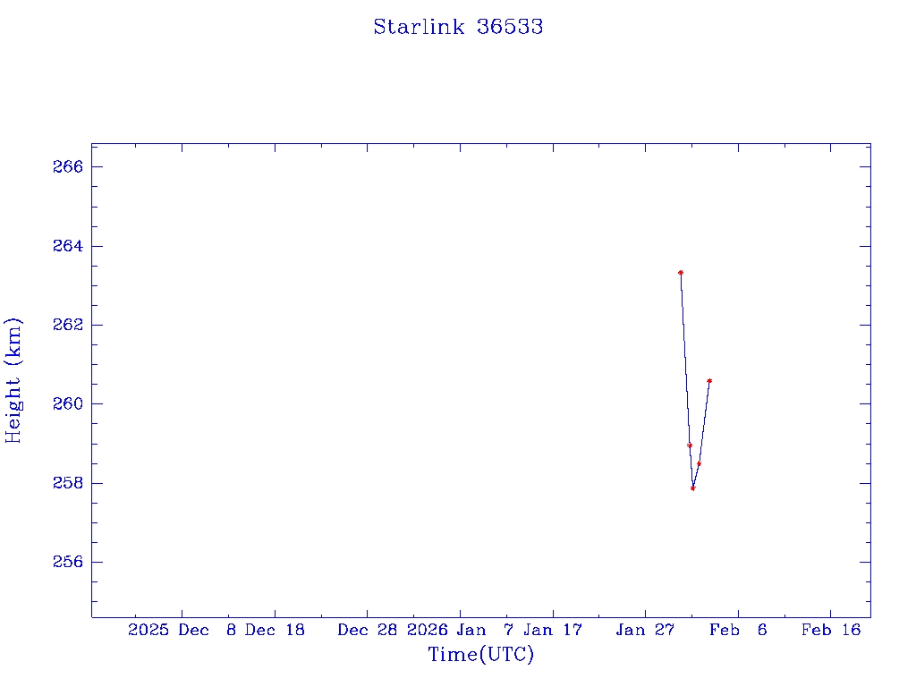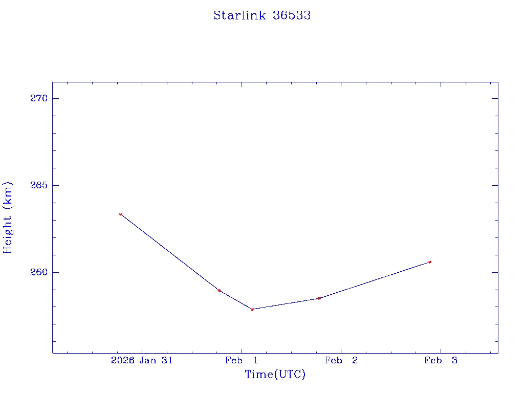 | Starlink 36533 | S67643 | A | 2026 Jan 30 | * | - |  |  |  |