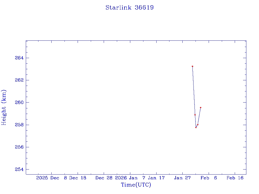 | Starlink 36619 | S67645 | A | 2026 Jan 30 | * | - |  |  |  |