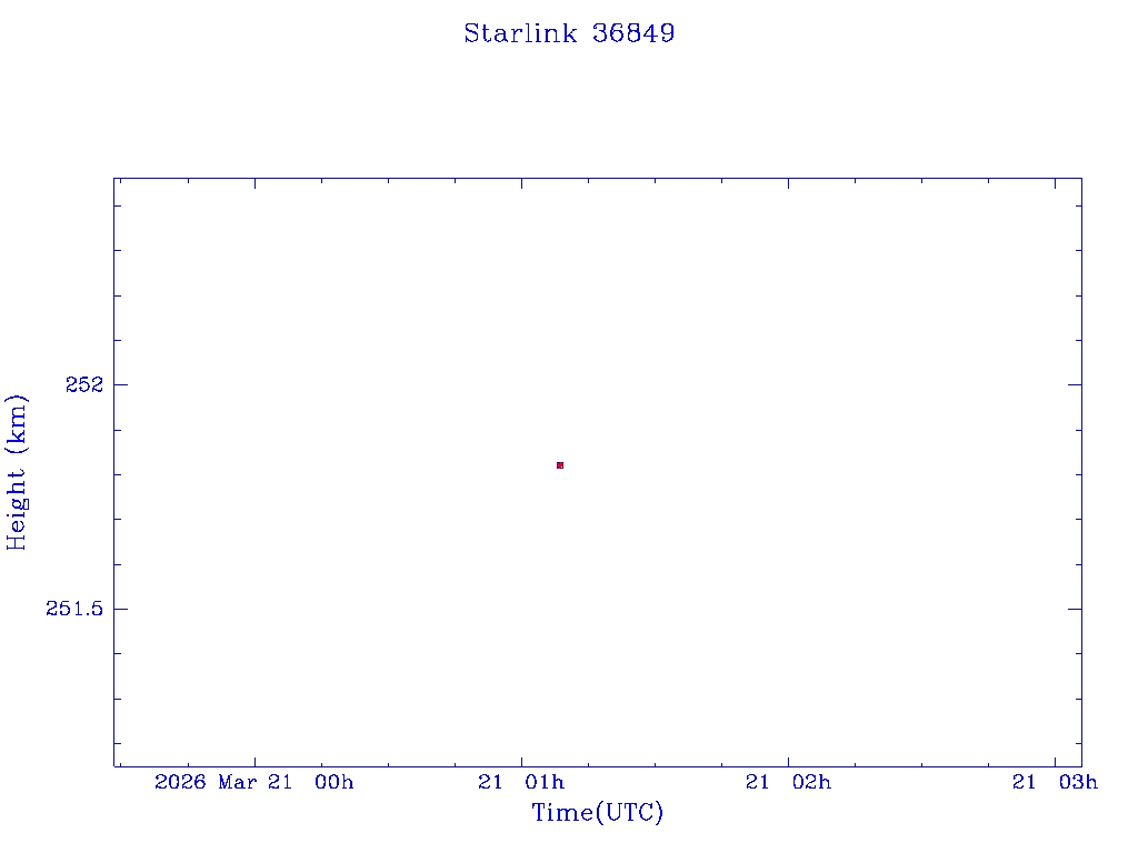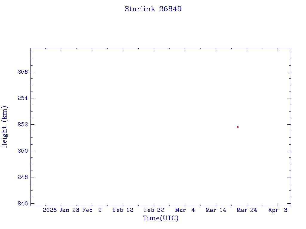 | Starlink 36849 | S68304 | D | 2026 Mar 20 | * | - |  |  |  |