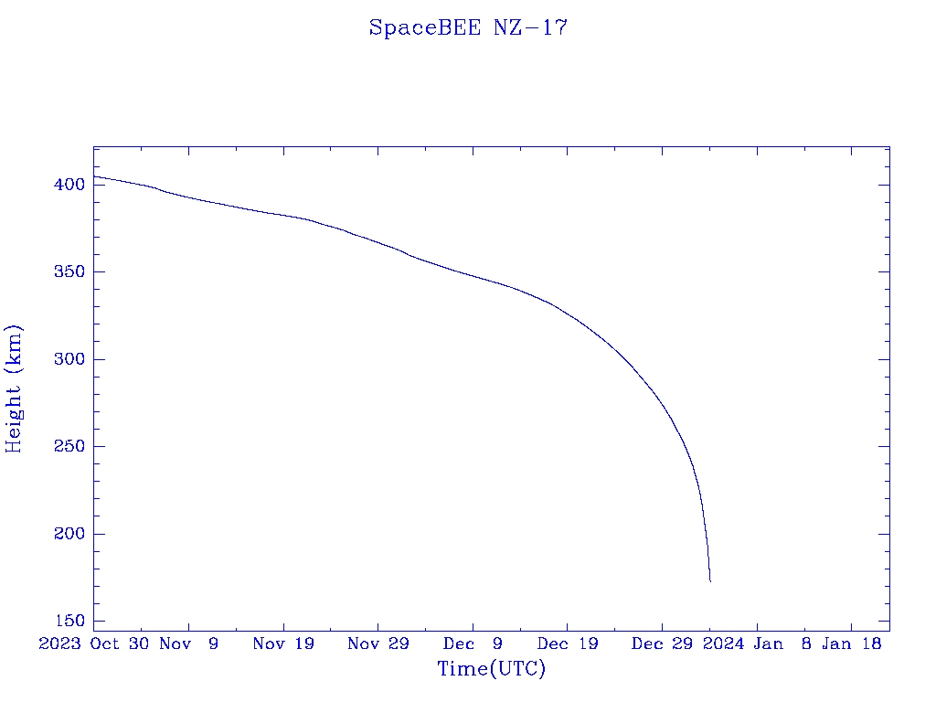 | SpaceBEE NZ-17 | S52397 | | 2022 May 2 | 2023 Dec? | 2024 Jan 5 |  |  |  |