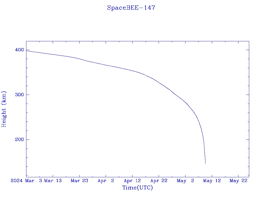 | SpaceBEE-147 | S52415 | | 2022 May 2 | 2024 Apr? | 2024 May 9? |  |  |  |