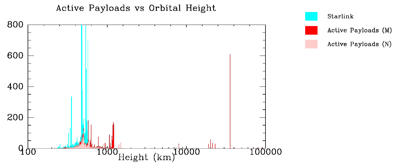 Sat and Debris Population - number vs height