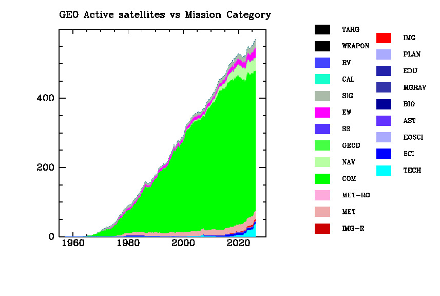 Active sats versus mission category and orbit type